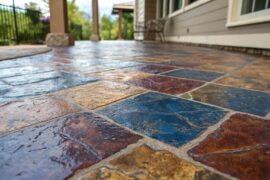 Add a splash of personality with colored concrete overlays. Whether you’re into bold colors or subtle earthy tones, staining your concrete can transform any space into a lively oasis.