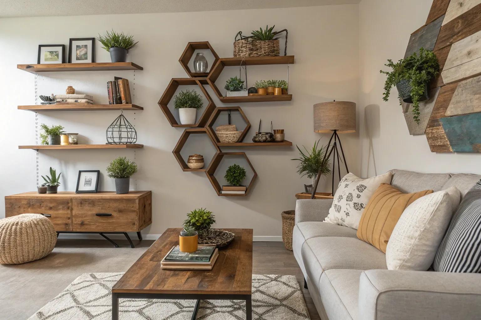 - Honeycomb Floating Shelves: Create eye-catching displays using these elegant honeycomb floating shelves to maximize your space.