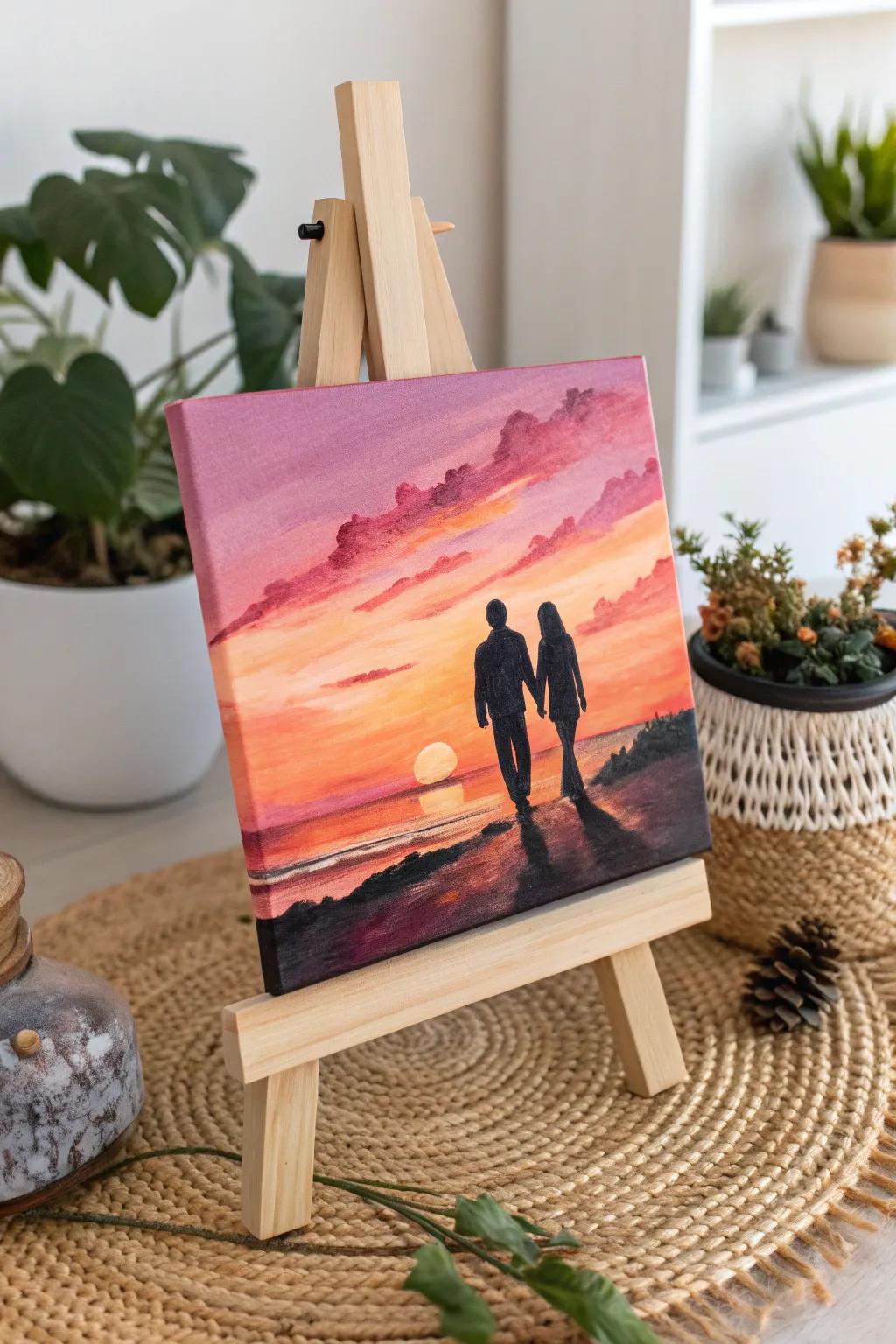 Depict a cherished memory, like your first date or a special trip. Painting these moments together brings them to life and deepens your connection.