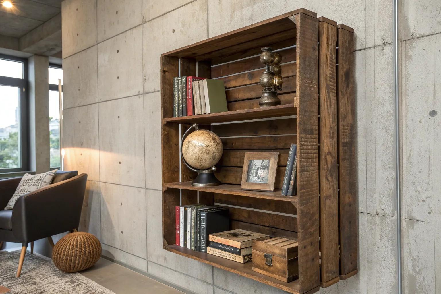 Elevate your space with wall-mounted crate displays that showcase timeless craftsmanship.