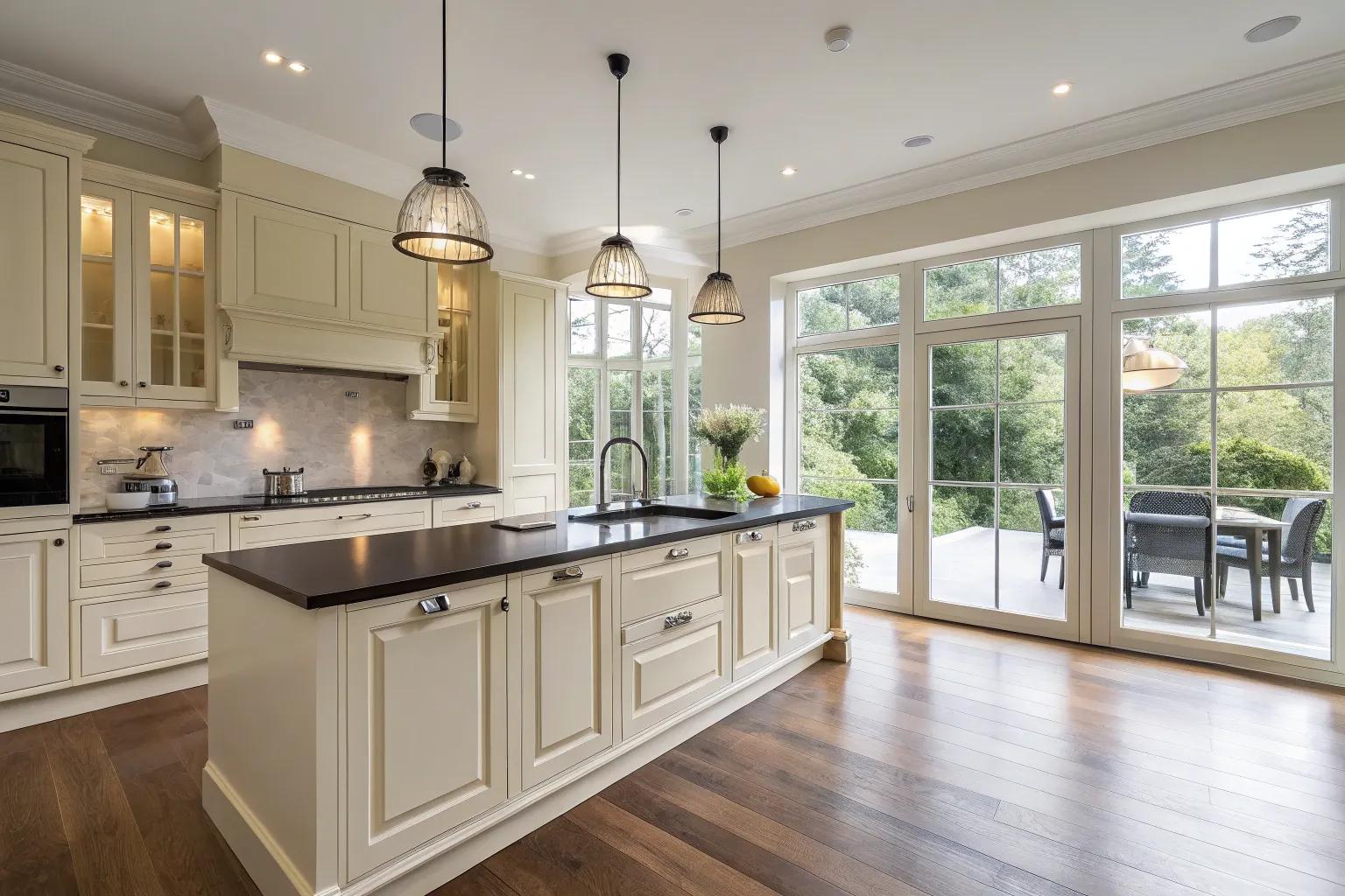 - Monochrome Pendant Lights: Illuminate your kitchen with elegant pendant lights in a cream and black design.