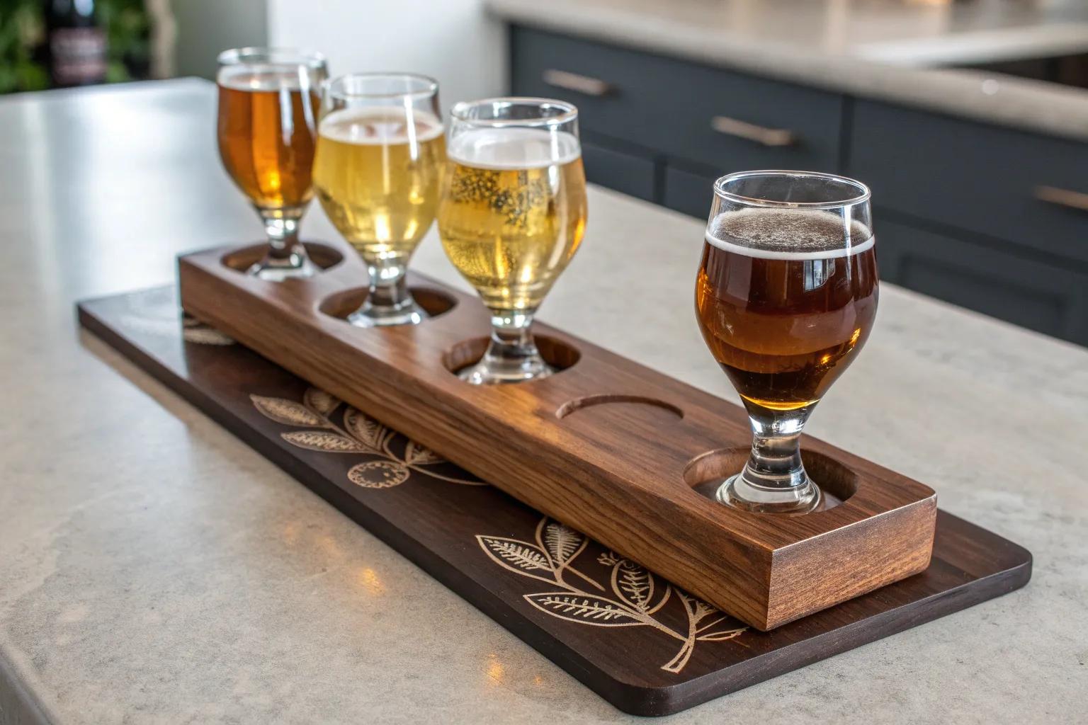 Elevate your beer tasting experience with a handcrafted flight board, where every cutout tells a story of creativity and skill.