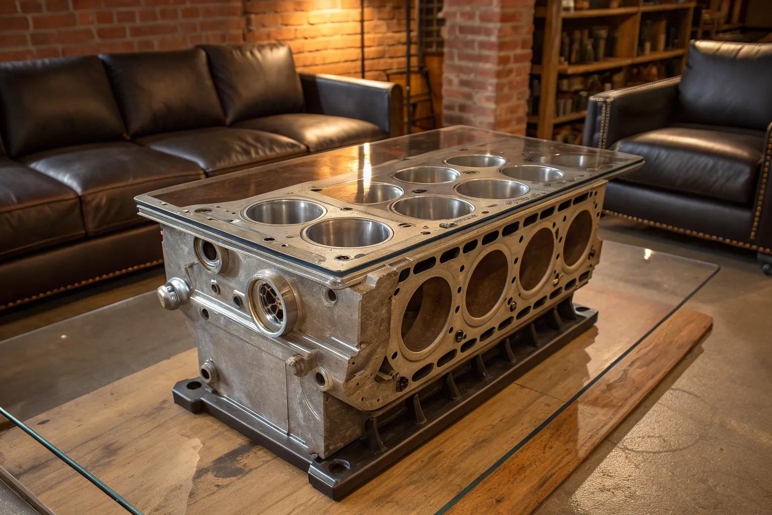 I turned an old engine block into a coffee table, and it’s a conversation starter in my living room. Just add a glass top, and you’ve got yourself a sturdy and eye-catching piece!