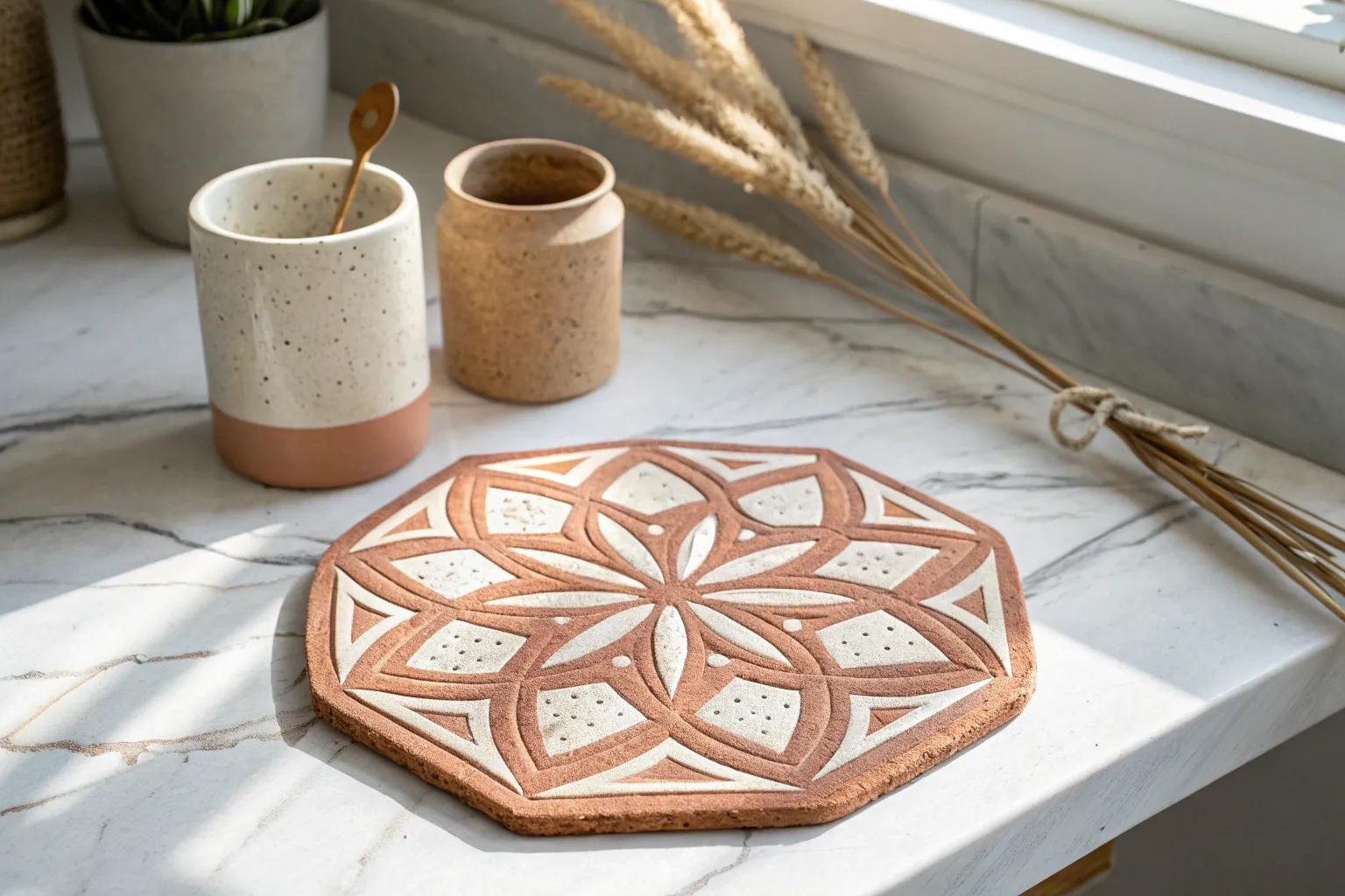 Take your love for geometry to the kitchen with geometric clay trivets. These designs add a modern touch, and crafting them feels like playing with a grown-up version of building blocks. For more inspiration, explore these other DIY clay projects ideas.