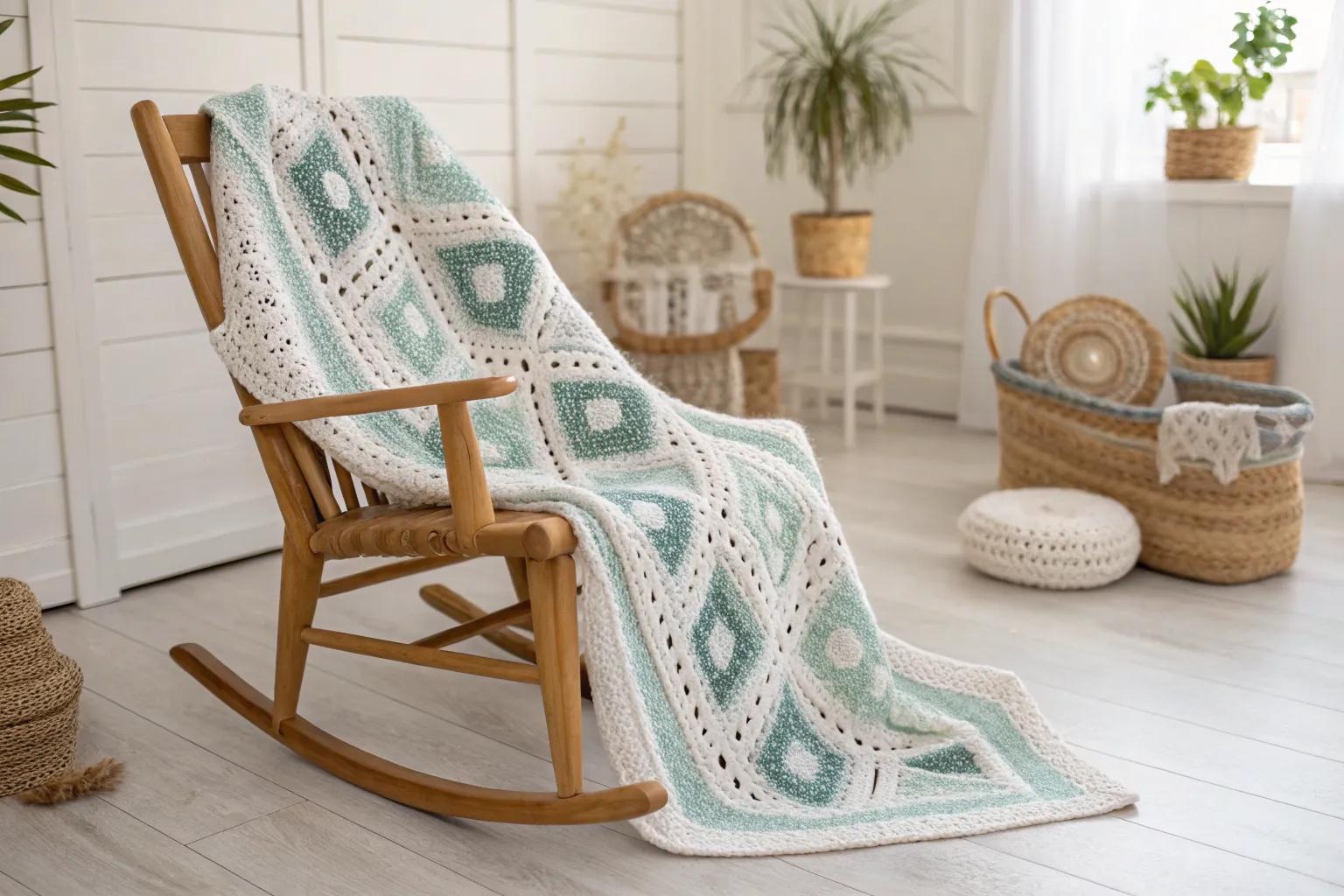 Pastel shades of blue and green can create a soft, soothing palette. I adore how these colors, along with other crochet blanket color ideas, blend seamlessly into any nursery theme.