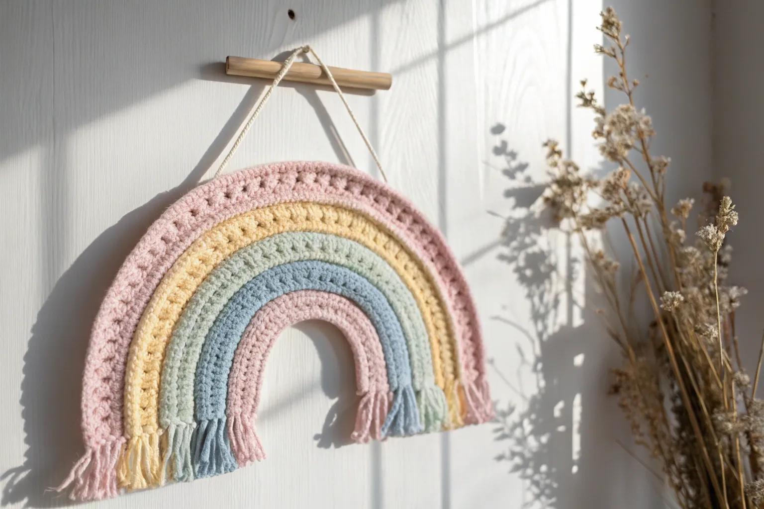 Transform any blank wall into a statement piece with a crochet rainbow wall hanging. If you enjoy this project, you might also get inspired by these rainbow wall painting ideas. I made one for my studio, and it never fails to lift my spirits every time I walk in.