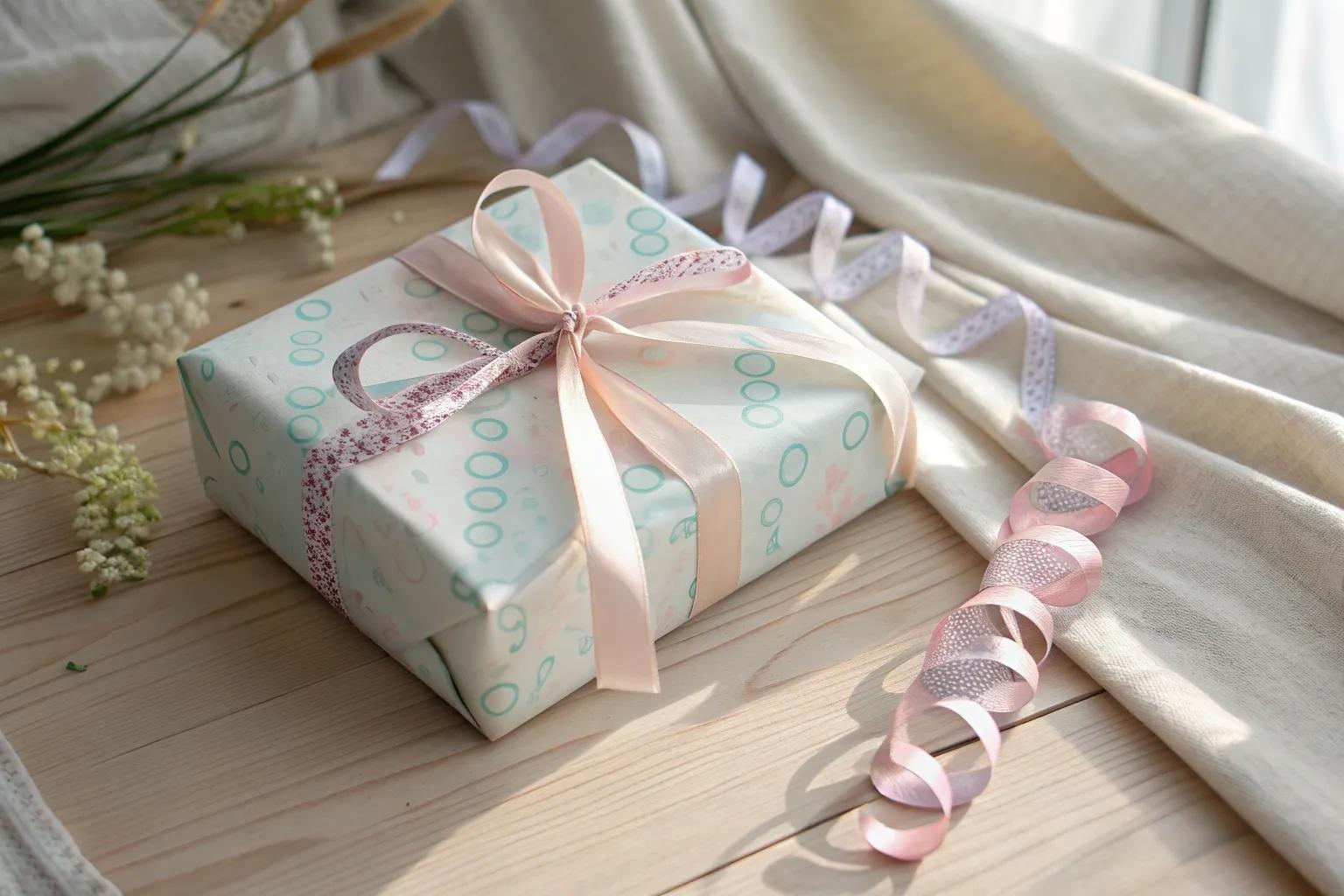 Elevate your gift-giving with a personal touch: a beautifully wrapped gift card with boho-inspired curling ribbons.