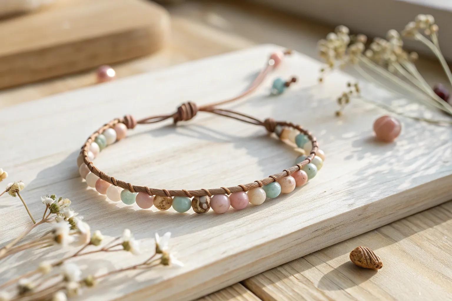 A simple beaded bracelet can be a showstopper, especially when you play with different bead sizes and colors. I often find that mixing glass and wooden beads creates a delightful contrast.