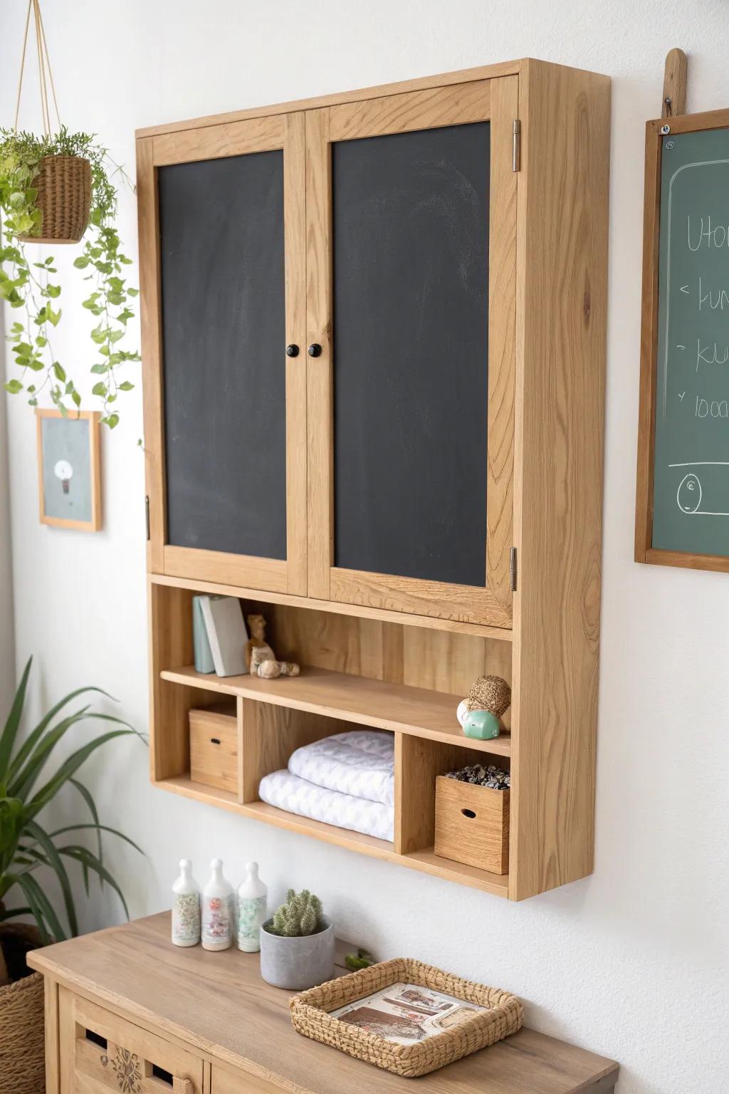 - Wall-Mounted Chalkboard Cabinet: Store diapers stylishly and leave fun messages for your baby with this handy cabinet.