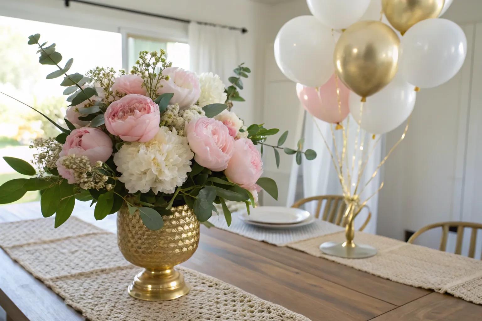 Celebrate in style with a chic gold and white centerpiece, perfect for an 80th birthday bash!