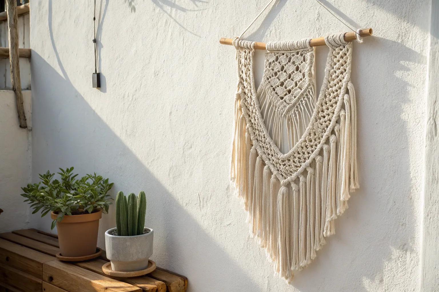 Add texture with a macrame piece. I crafted mine during a rainy weekend, and it brings a boho vibe to my space. For more projects with a similar aesthetic, see these cute girly DIY room decor ideas.