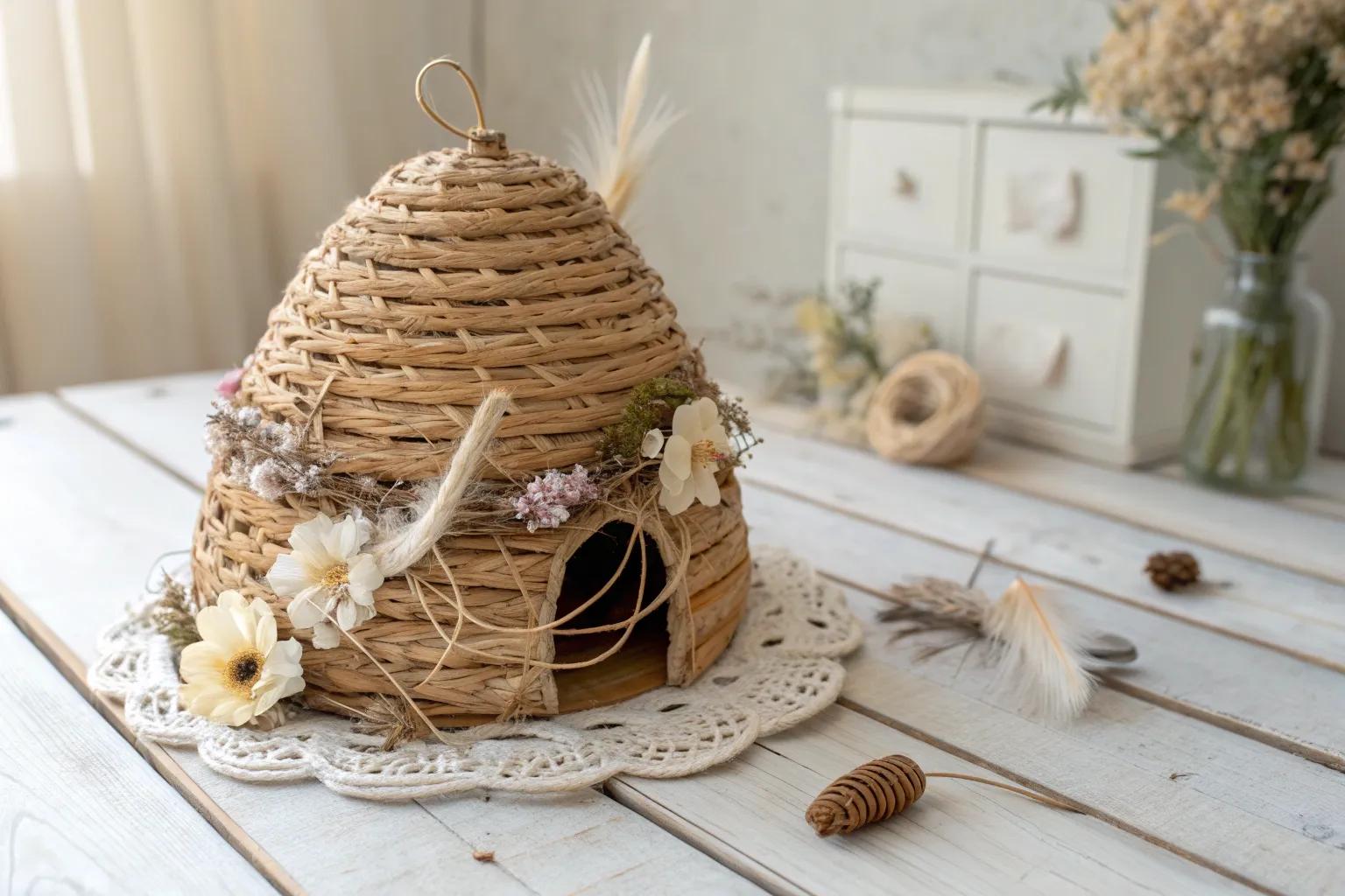 Using a flower pot as the base, wrap rope tightly around it to create a charming beehive shape. I’ve used this technique on my porch, and it adds the perfect rustic touch for spring or summer.