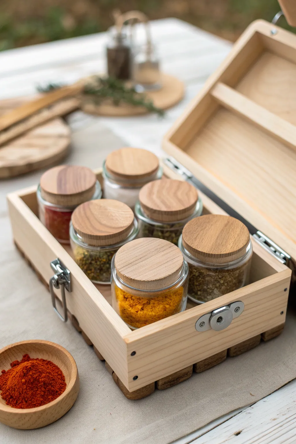• Portable Spice Container Kit: Elevate your outdoor meals by keeping spices organized and fresh in easily accessible containers.