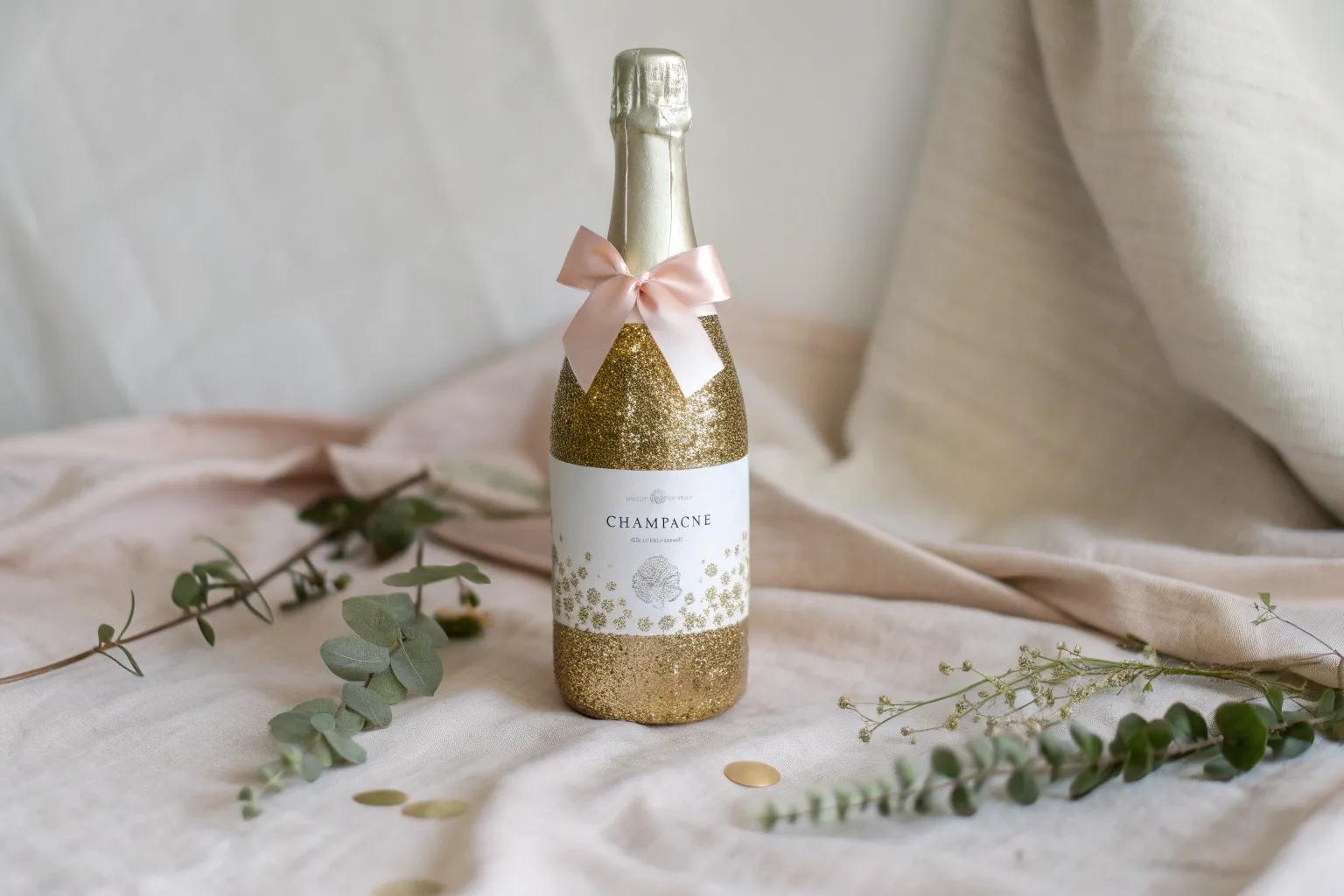 Nothing says celebration quite like glitter! Simply coat your champagne bottle in craft glue and roll it in your favorite shade of glitter. I once used a mix of gold and silver for a New Year’s Eve bash, and it was a total showstopper! You can find more inspiration with these DIY glass bottle decoration ideas.