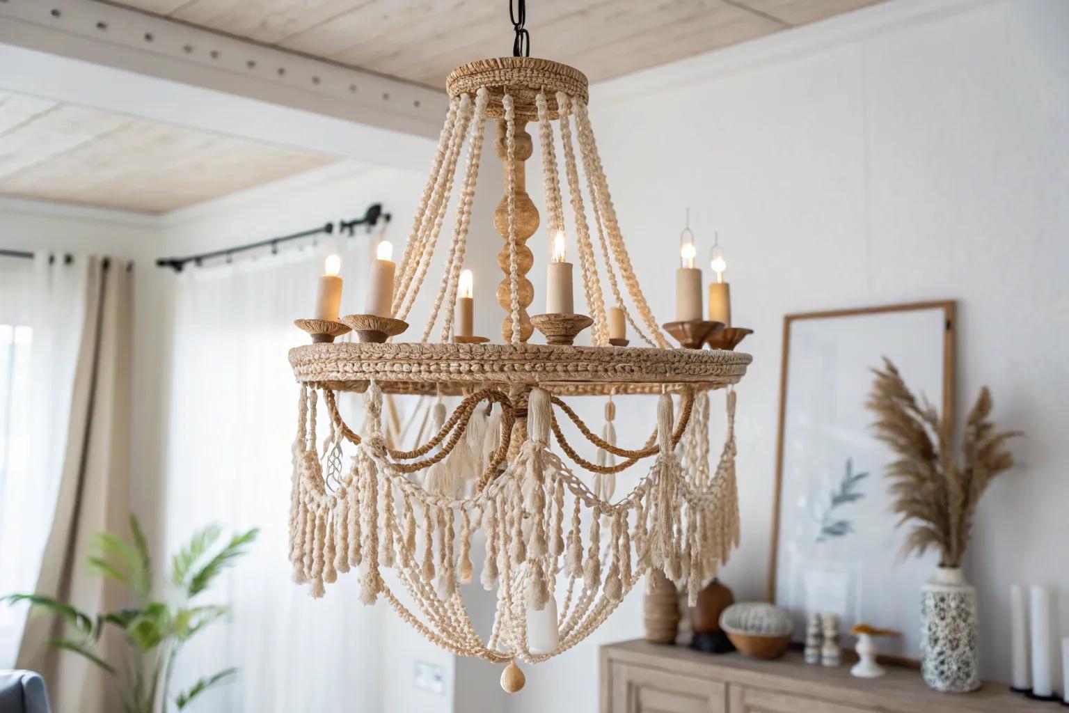 - Rustic Wooden Beads: Enhance the rustic look with wooden beads, beautifully complementing the sisal rope-covered chandelier.
