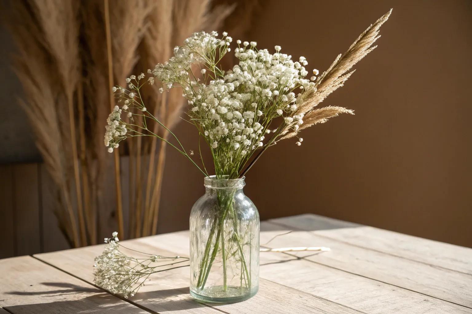 - Dried Baby’s Breath Flowers: Complement your rustic vase with delicate dried flowers. Embrace a warm, farmhouse vibe beautifully!