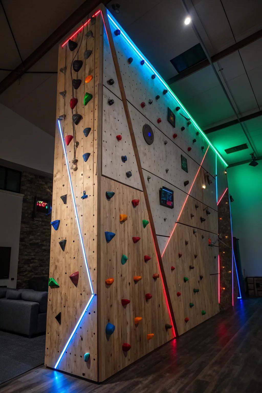 - LED Strip Lights: Illuminate your wall with vibrant LED strips and create an exciting climbing atmosphere.