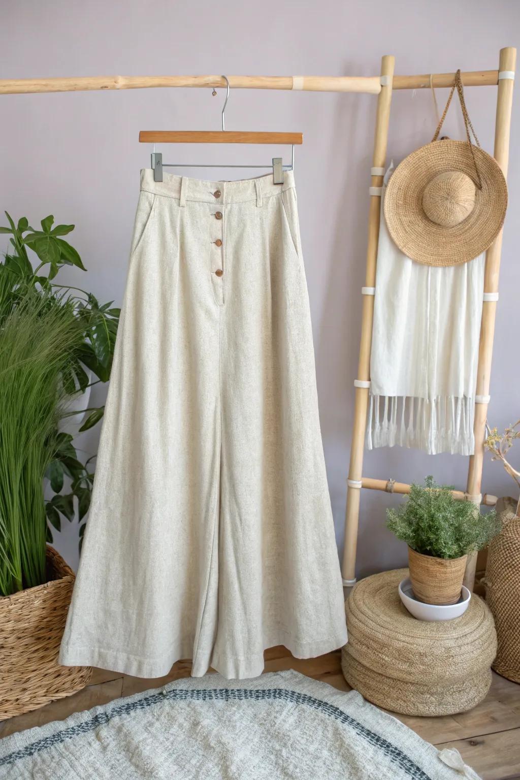 Turn those old trousers into a chic skirt by cutting and sewing the seams. I transformed a pair of wide-leg pants this way and now have an elegant A-line skirt.