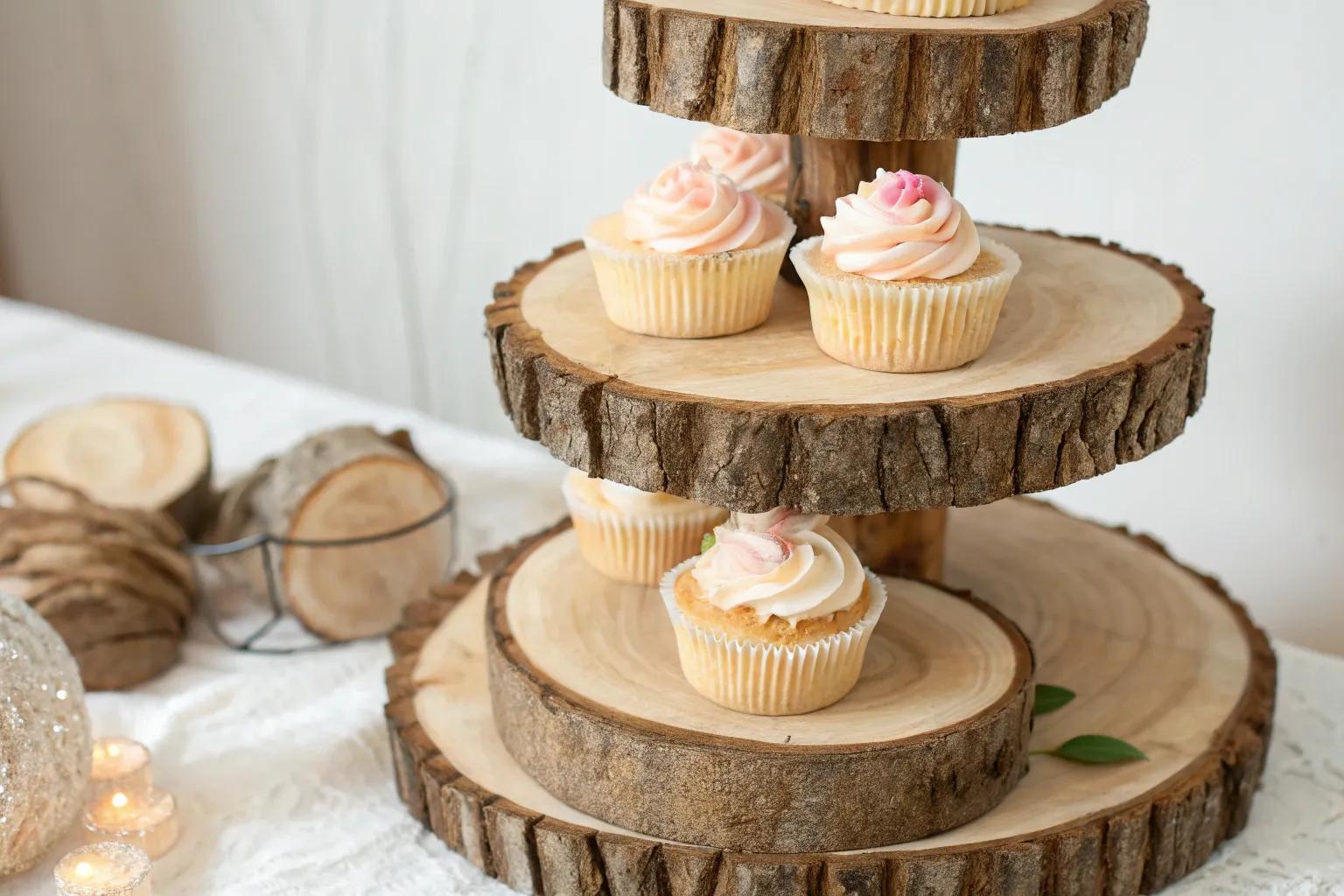- Natural Wood Slices: Create an authentic rustic look with these versatile wood slices for your cupcake display.