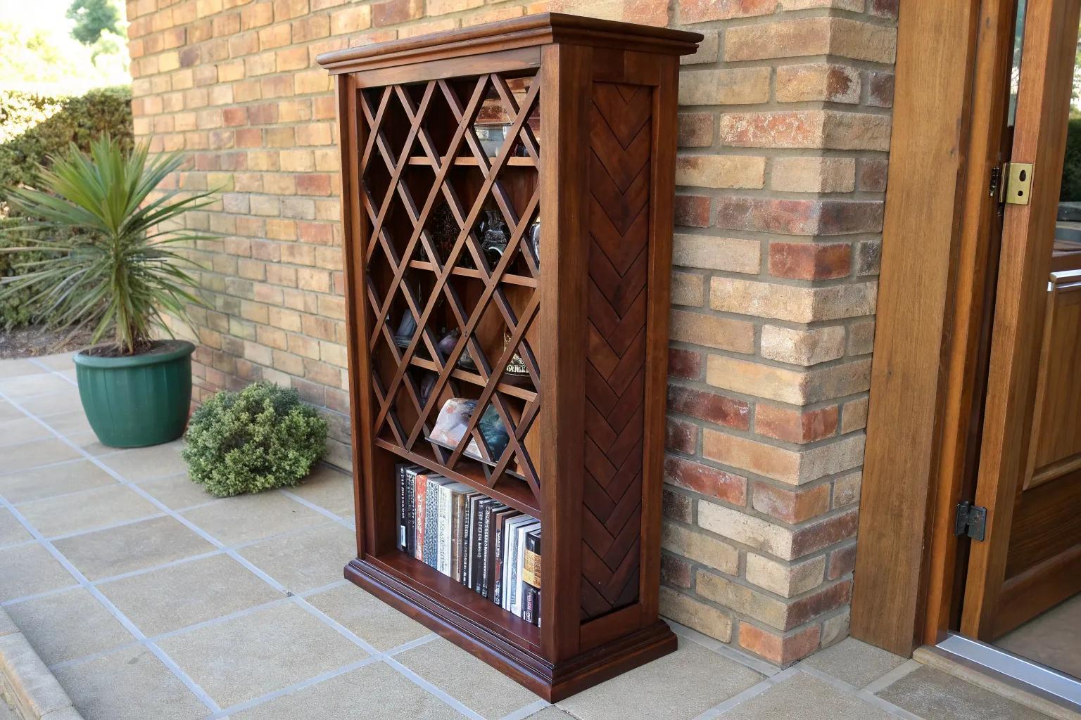 Add some flair with geometric shelf designs that double as home decor. I crafted hexagonal shelves that make my DVDs look like a modern art installation.