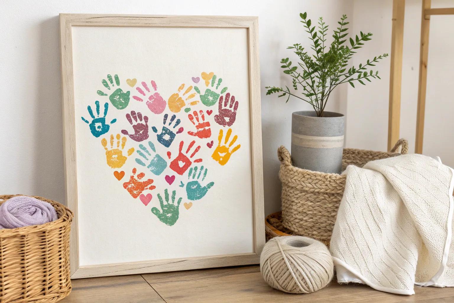 Create a family tree using colorful handprints as the branches. I love how each handprint represents a family member, making it a personal and vibrant piece of art.