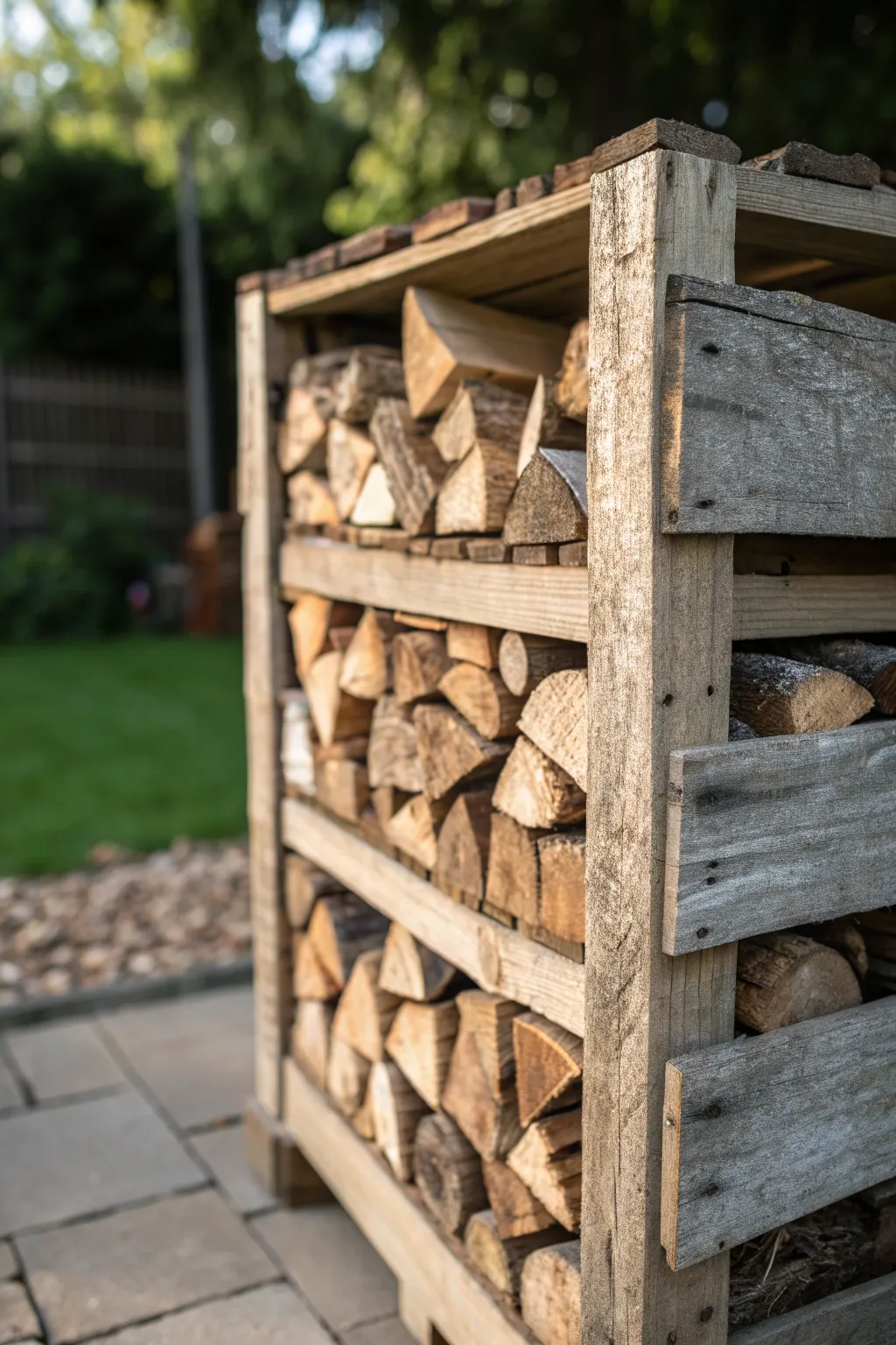 Transform those old pallets into a rustic firewood rack that has charm and plenty of storage. I’ve done this in my own yard, and it’s an easy way to upcycle and keep your wood off the ground.