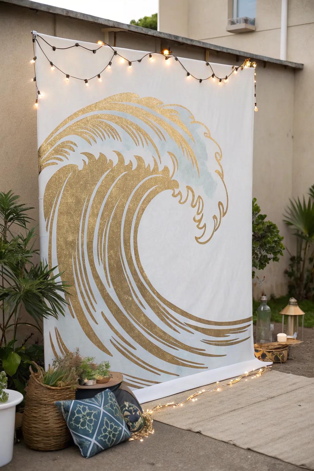 Paint or print wave patterns to add a dynamic ocean element to your backdrop. I once used metallic paints for a shimmering effect, and it was a showstopper! This design would look amazing with some of these circle backdrop ideas.