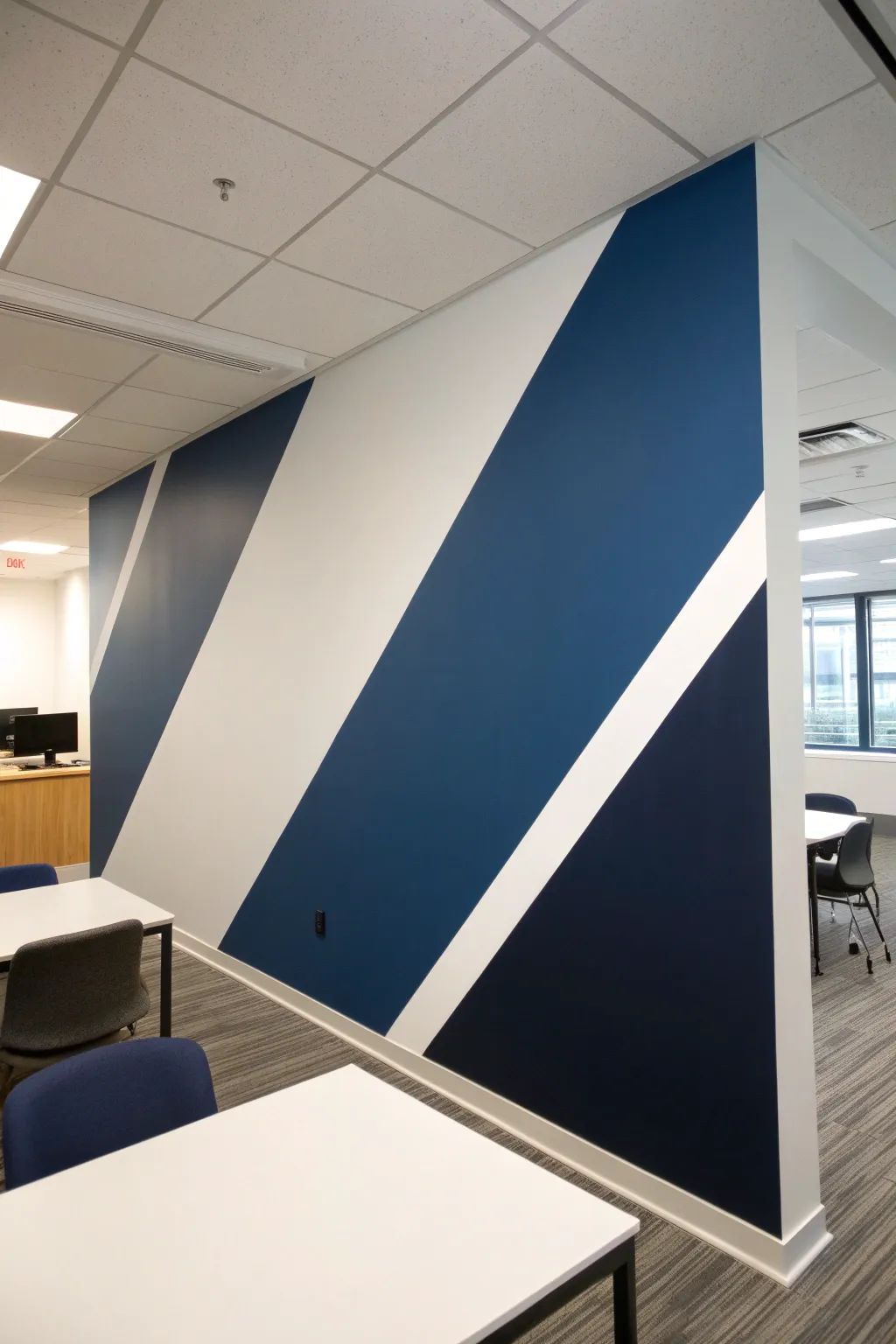 For a dynamic look, try diagonal color blocks. I painted a diagonal line across my office wall in two contrasting colors, and it completely transformed the space.