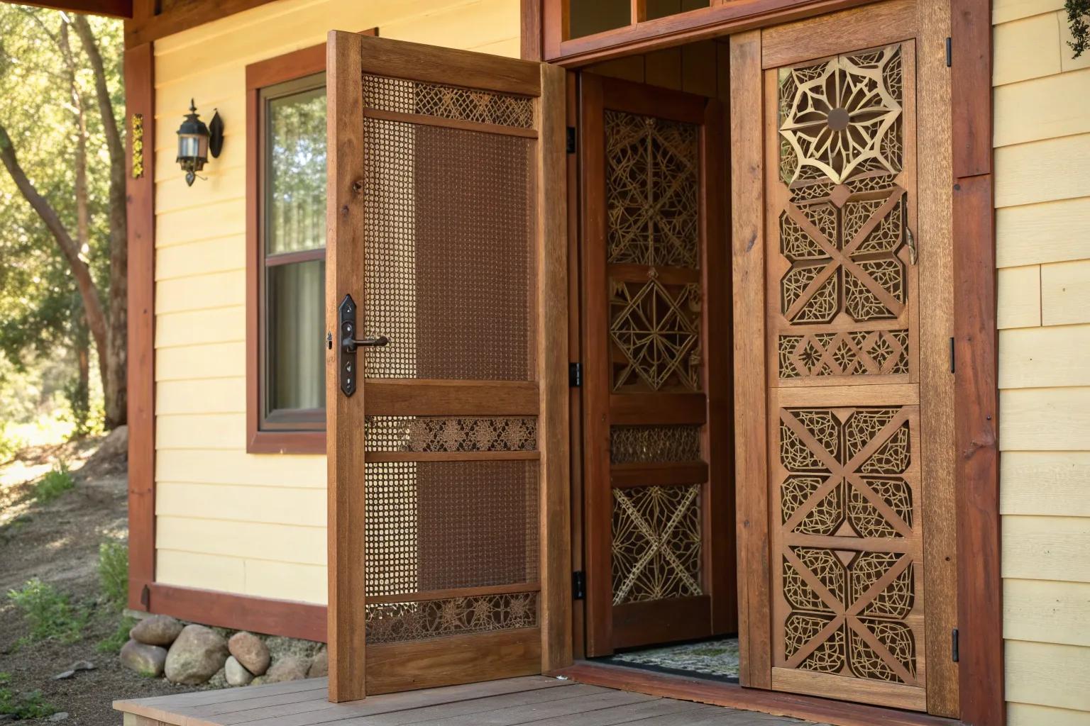 Incorporate artistic metalwork for a sophisticated touch. I found some intricate designs that turned my screen door into a piece of art.