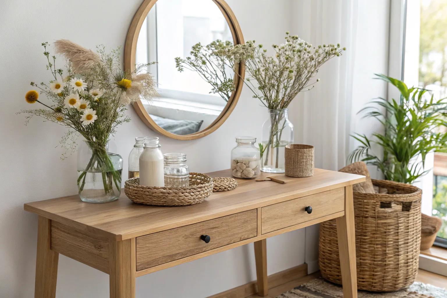 - Wood Vanity Table: Add warmth and elegance to your decor with a stylish wooden vanity table.