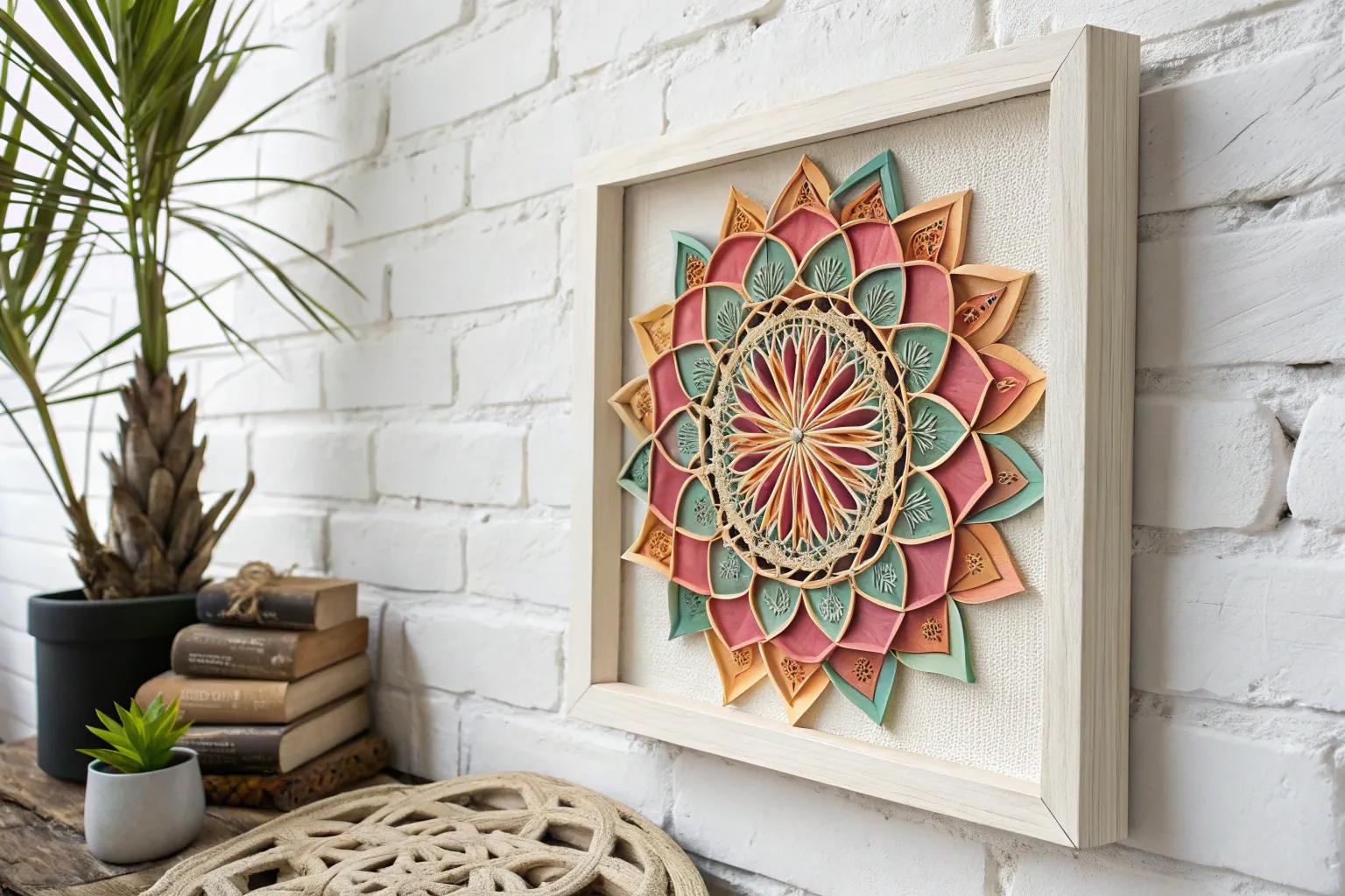 Add some depth with textured paper art by folding and layering paper to create a 3D effect. It’s like having a mini sculpture on your wall!