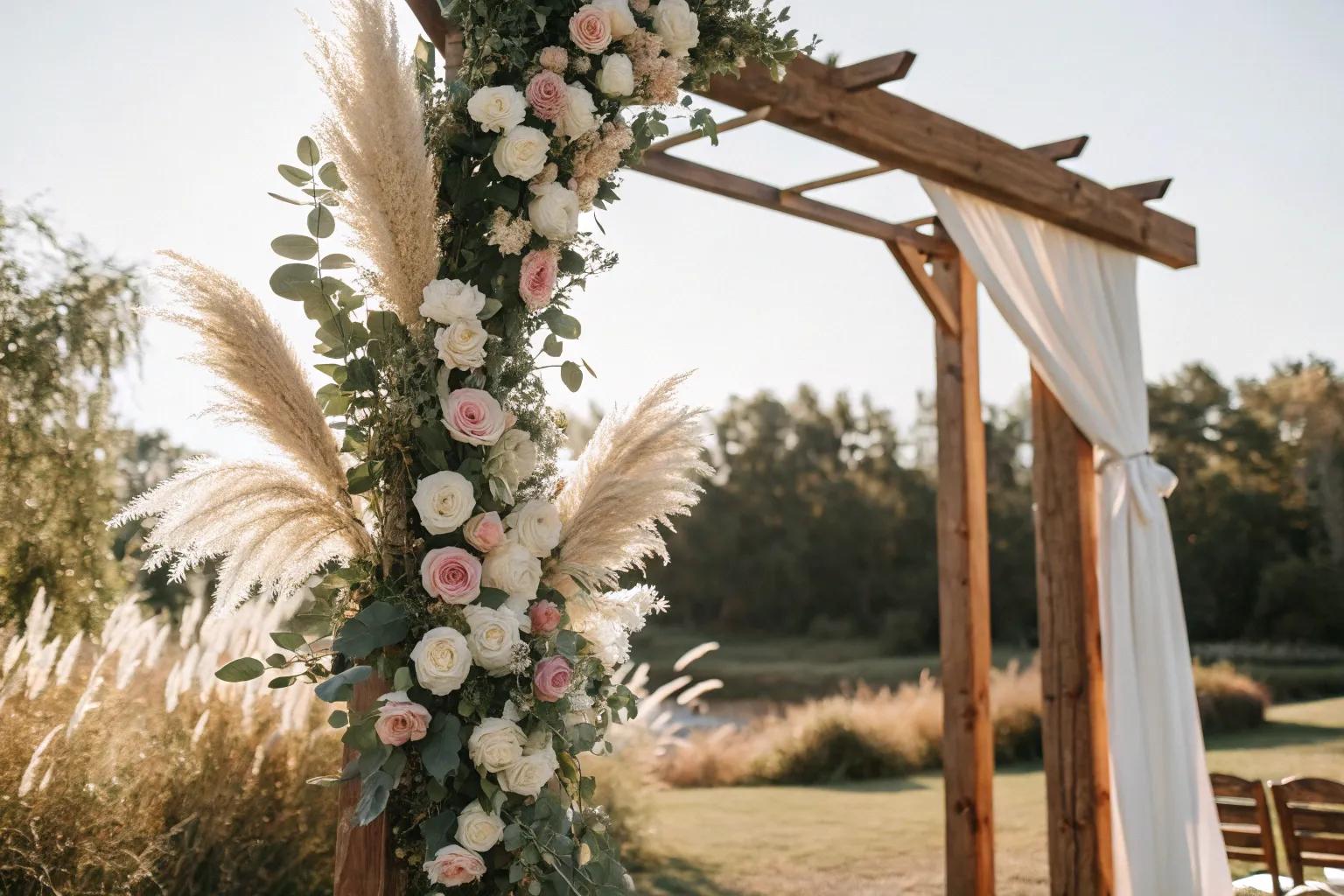 - Natural Pampas Grass Stems: Elevate your wedding arch with soft, feathery pampas grass for a dreamy bohemian touch.