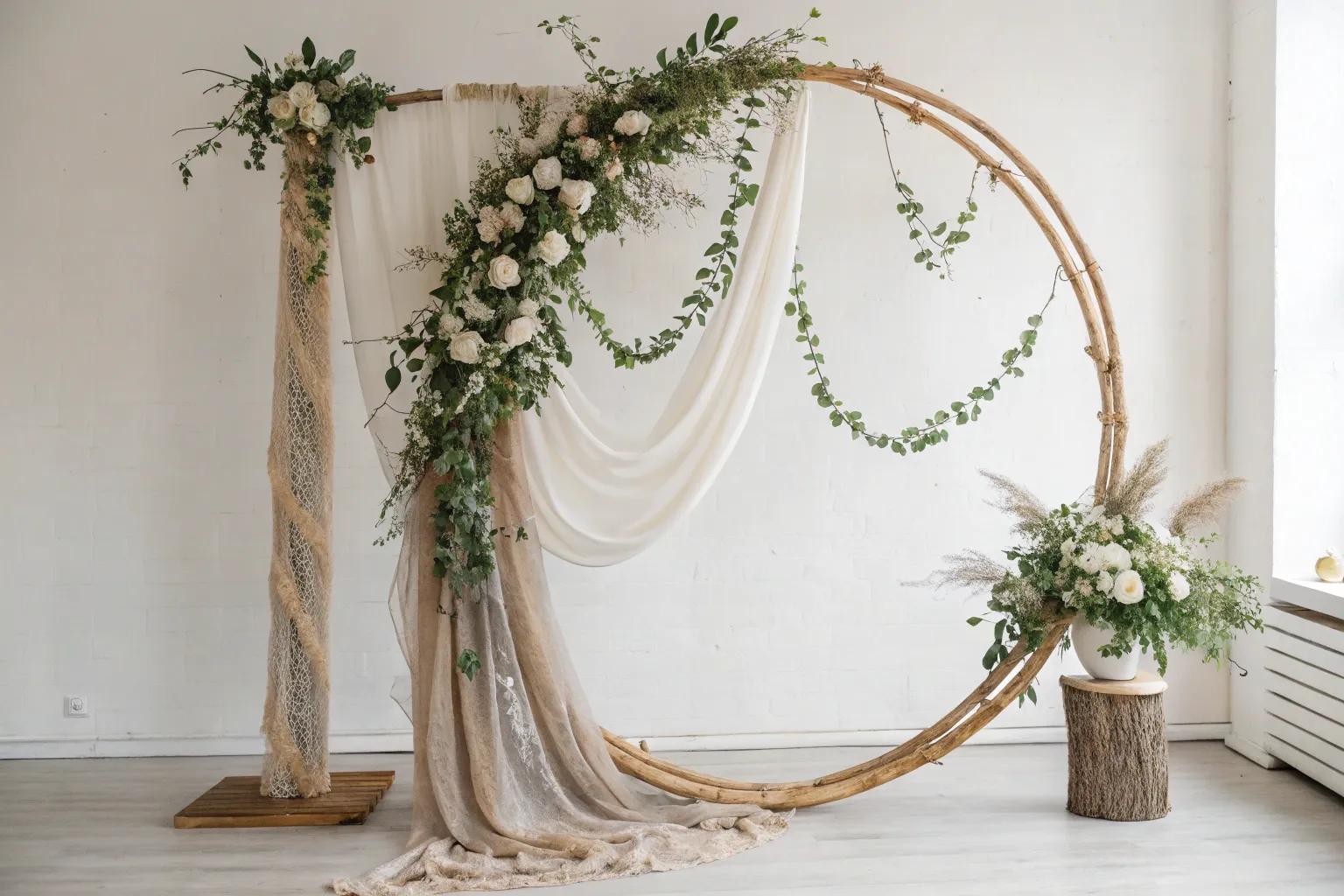 Embrace rustic elegance with a burlap and lace wedding backdrop that whispers simplicity and charm.