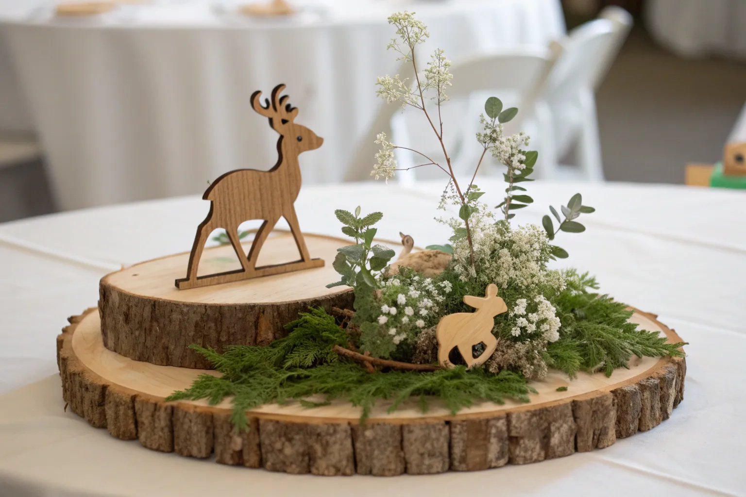 - Natural Wood Slice Centerpiece: Enhance your woodland theme with natural wood slices for a touch of earthy elegance.