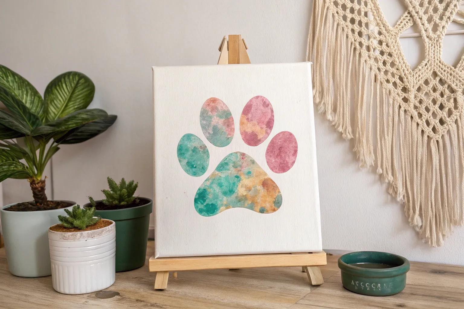 Let your pup’s creativity shine with a vibrant paw print masterpiece!