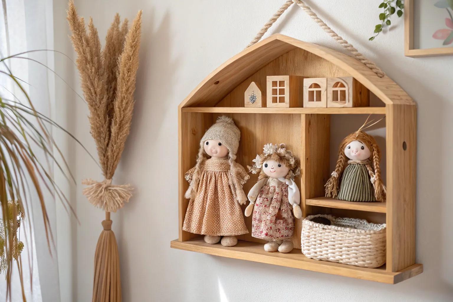 - Mini Dollhouse Shelf: Incorporate a charming mini shelf to display dolls, adding to the room’s playful sophistication.