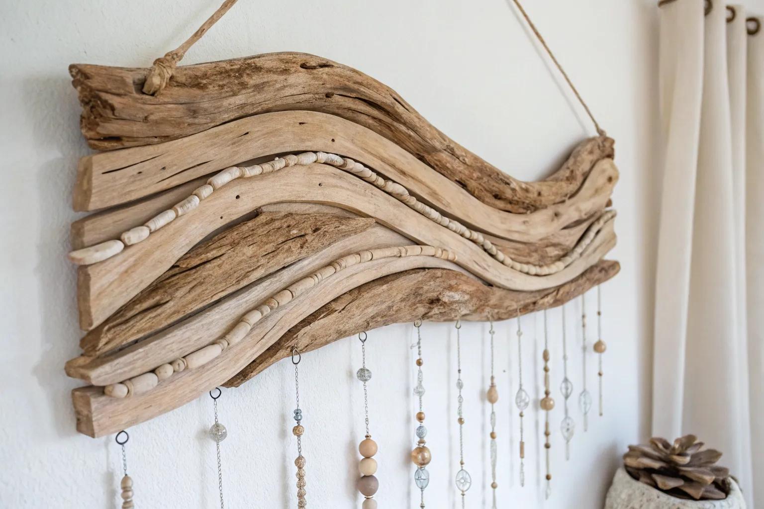 Combine driftwood with rope and fabric for a bohemian wall hanging. I mixed in some colorful threads, and it added a vibrant touch to my craft room.