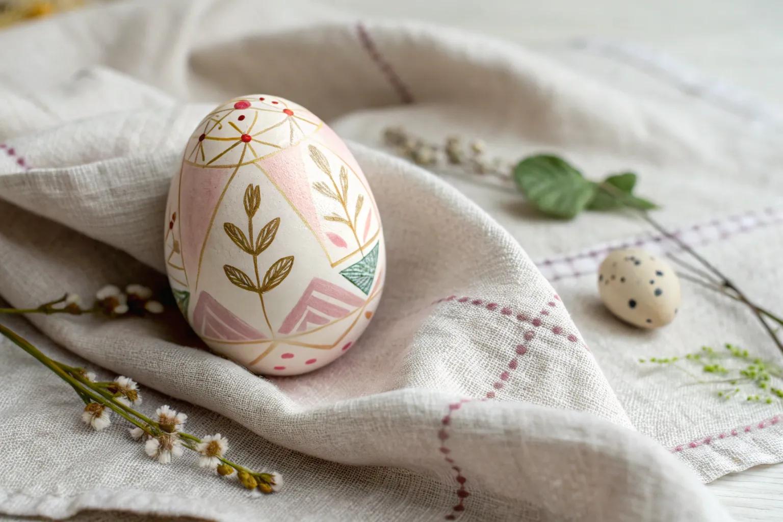 Dive into the world of geometric shapes and create bold designs using triangles, circles, and lines. I love mixing and matching colors to make each egg a unique piece of art.