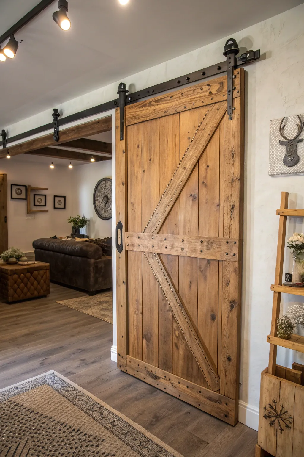 Elevate your space with the timeless charm of a sliding barn door, where rustic elegance meets modern functionality.