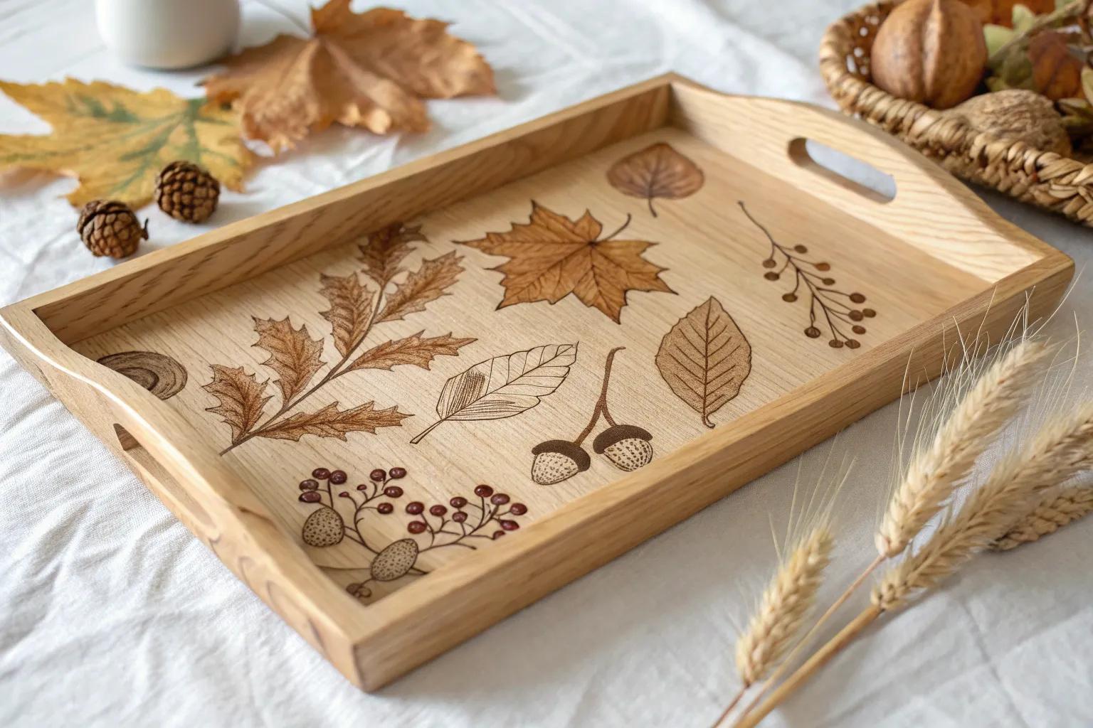 Burn a woodland scene onto a serving tray to bring the beauty of nature indoors. It’s one of many fun fall crafts ideas and is a conversation starter whenever I serve cider at gatherings.