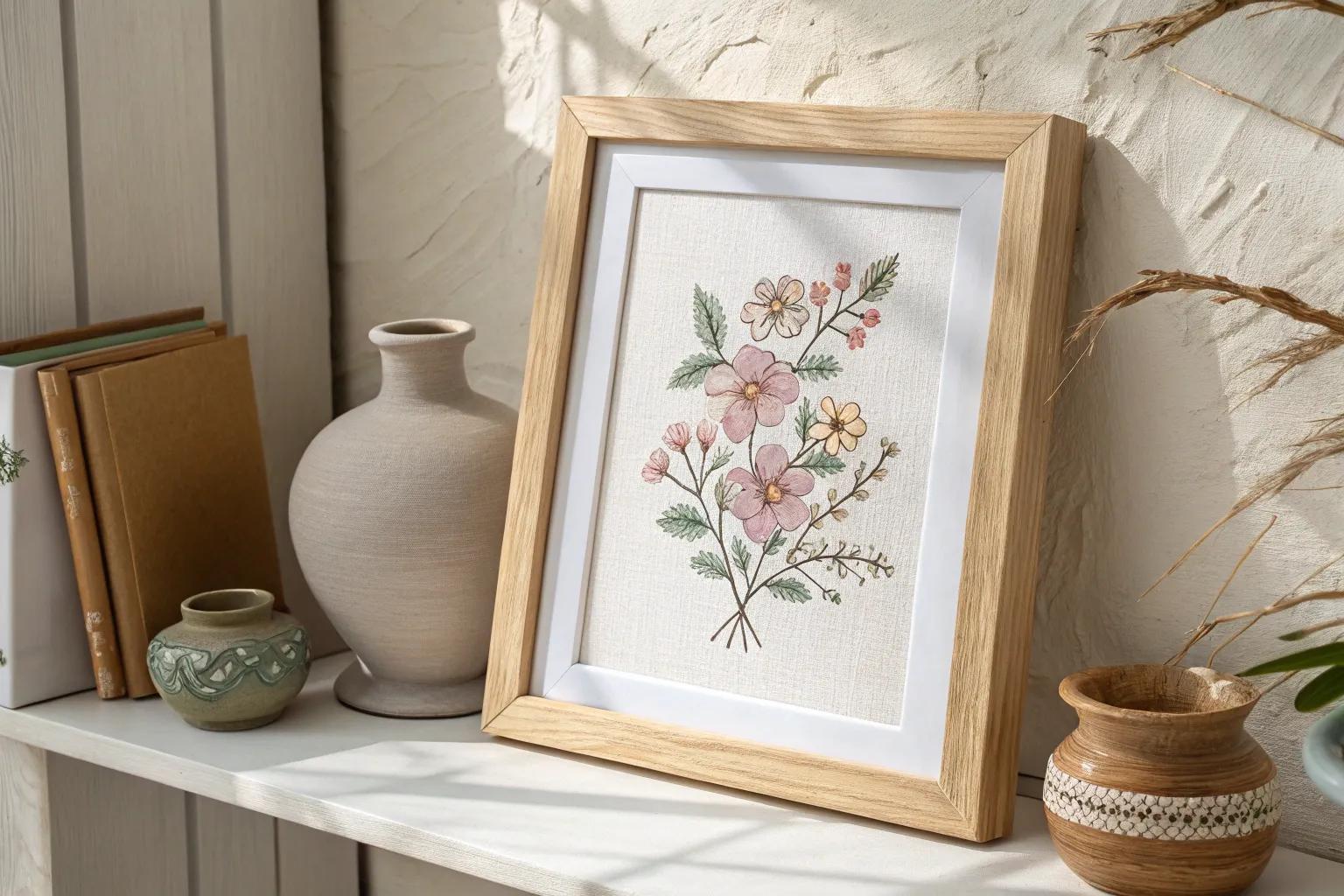 Instead of the usual glass frame, try framing your cross stitch on a canvas frame for a textured look. I once did this with a spring-themed piece, and it adds a lovely pop of texture to any room.