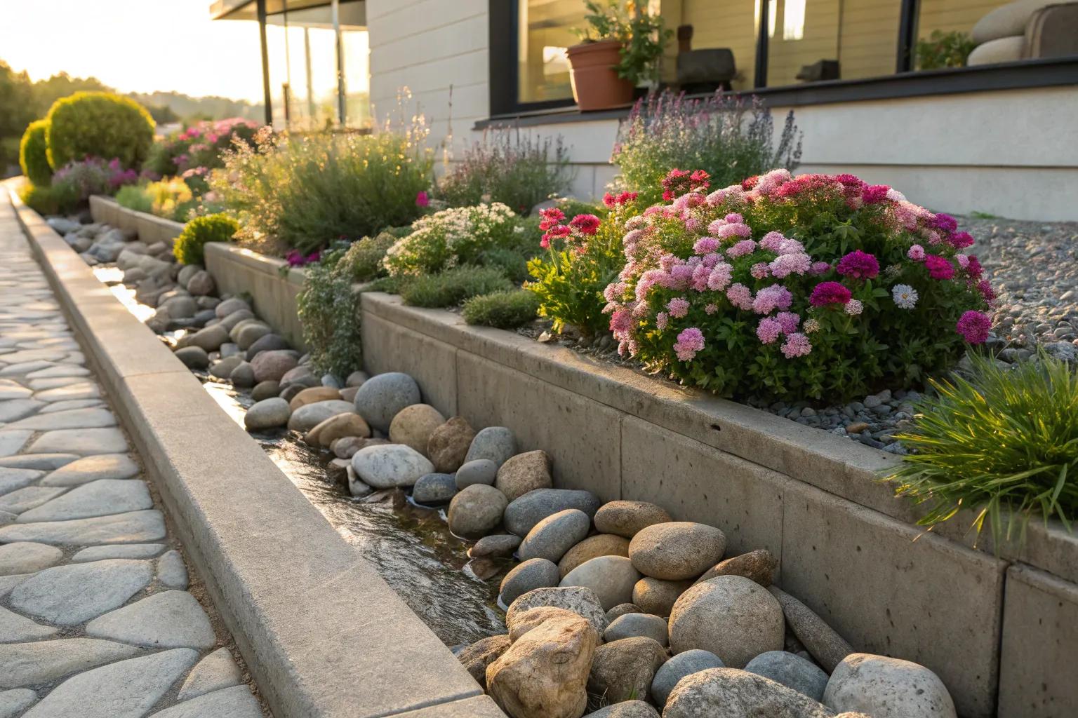 A dry creek can divert water using rocks and pebbles, turning a necessity into a beautiful landscape feature. Mine adds a rustic charm to the garden.
