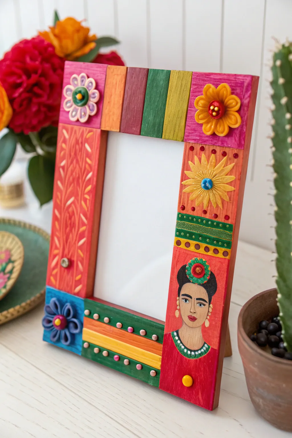 Let kids design their own picture frames inspired by Frida’s love for color and texture. They can use paint, beads, and recycled materials to create unique frames.