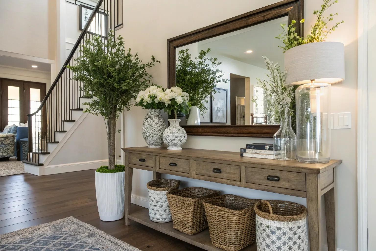 - Large Framed Wall Mirror: Enhance your entryway with a large mirror, adding elegance and a spacious feel instantly.