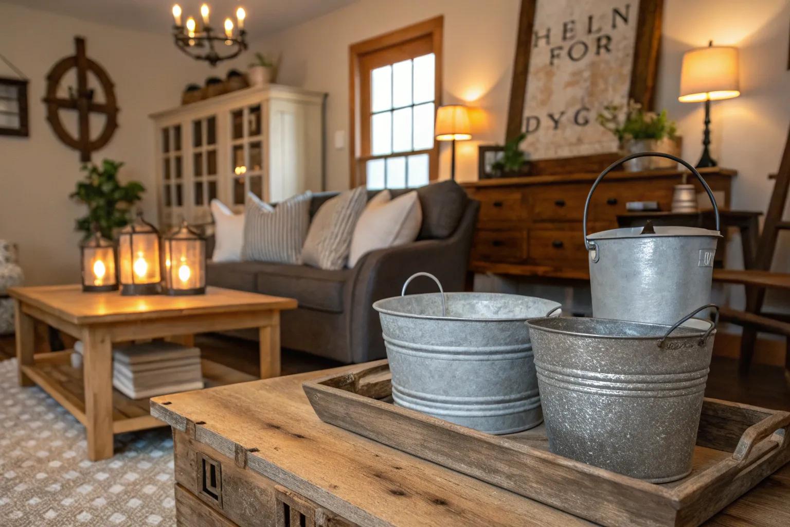 Integrate galvanized elements into your home to achieve that cozy farmhouse aesthetic we all adore. Think about using galvanized buckets as decorative touches to enhance your rustic vibe.