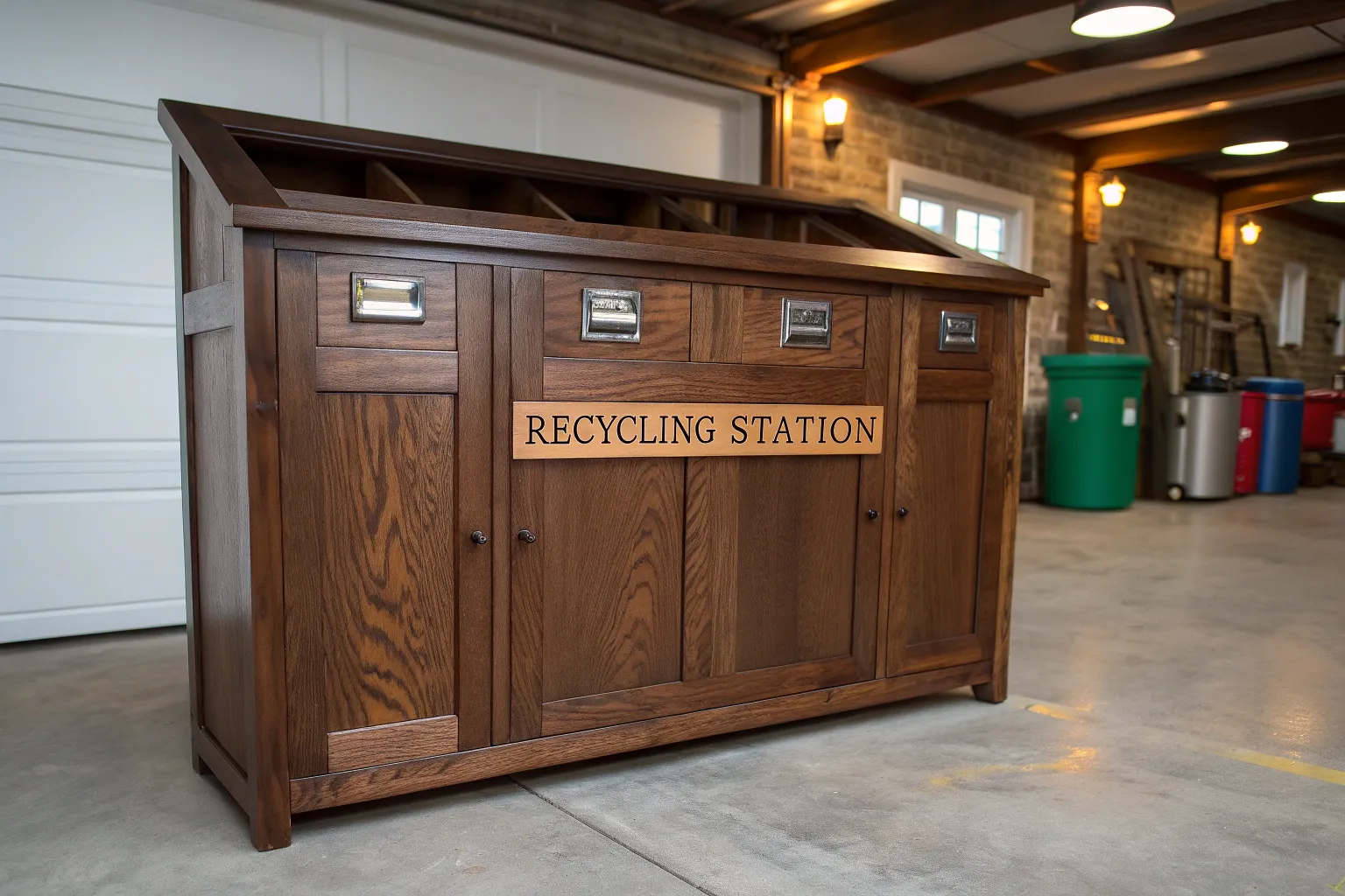 - Decorative Multi-Compartment Sorting Cabinet: Enhance your garage with a decorative cabinet designed for easy recycling separation and access.