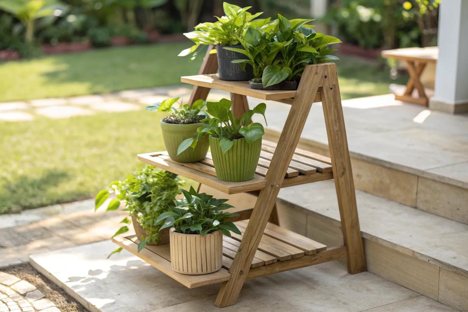 - Wooden Ladder Shelf: Transform your garden with a rustic wooden ladder shelf, perfect for displaying potted plants.