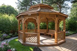 - Wooden Lattice Privacy Panels: Enhance your gazebo with rustic charm and privacy using elegant wooden lattice privacy panels.