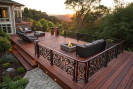 Add a touch of modern elegance with tinted glass panels. They offer privacy while still allowing you to enjoy the surrounding views—a clever solution I’ve used in more upscale projects.