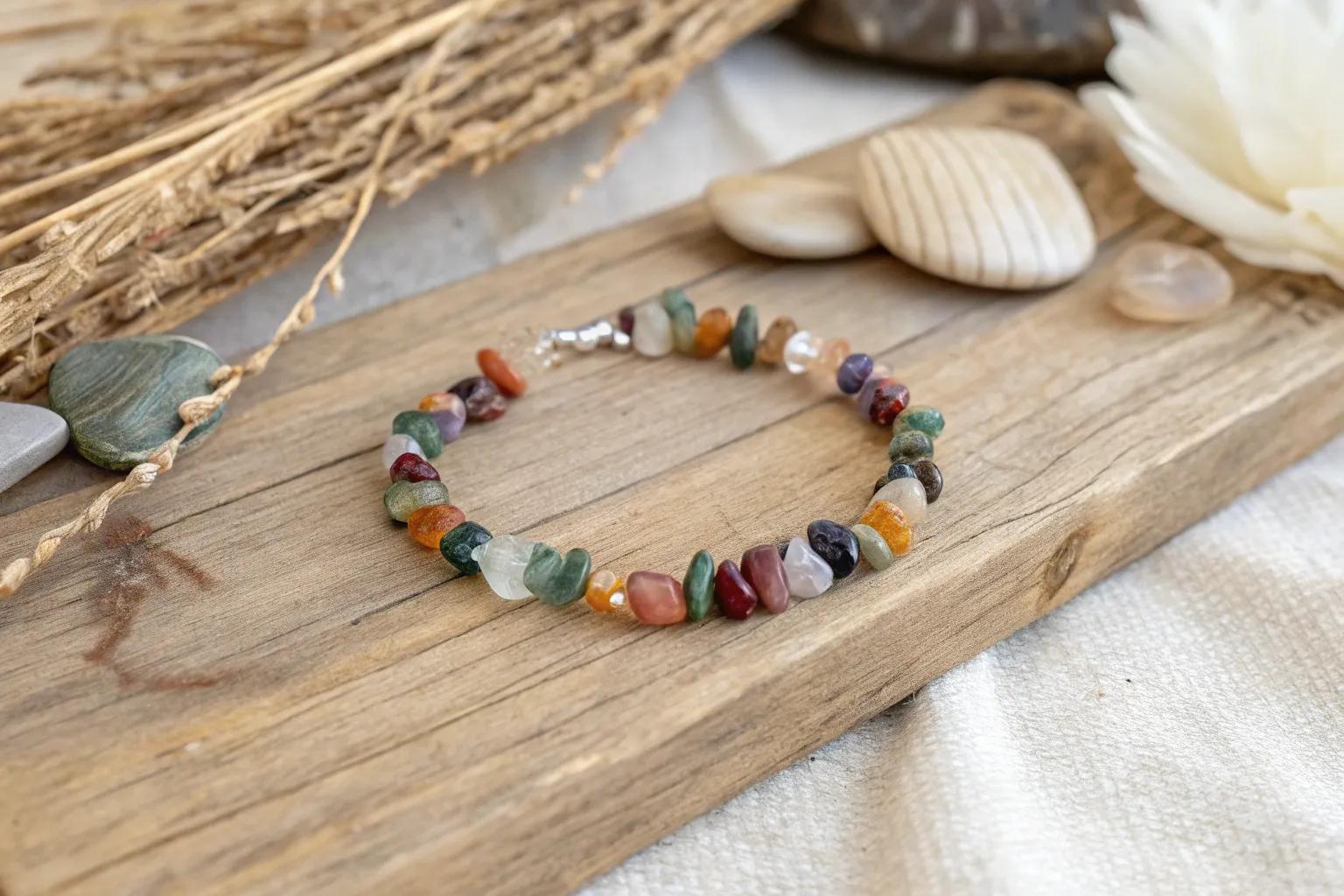 String some gemstone chips onto a simple anklet for that beach-ready vibe. I wear mine all summer long, and it adds a playful touch to my sandal game. This concept works just as well for wrists; check out these creative gemstone bracelet ideas for inspiration.